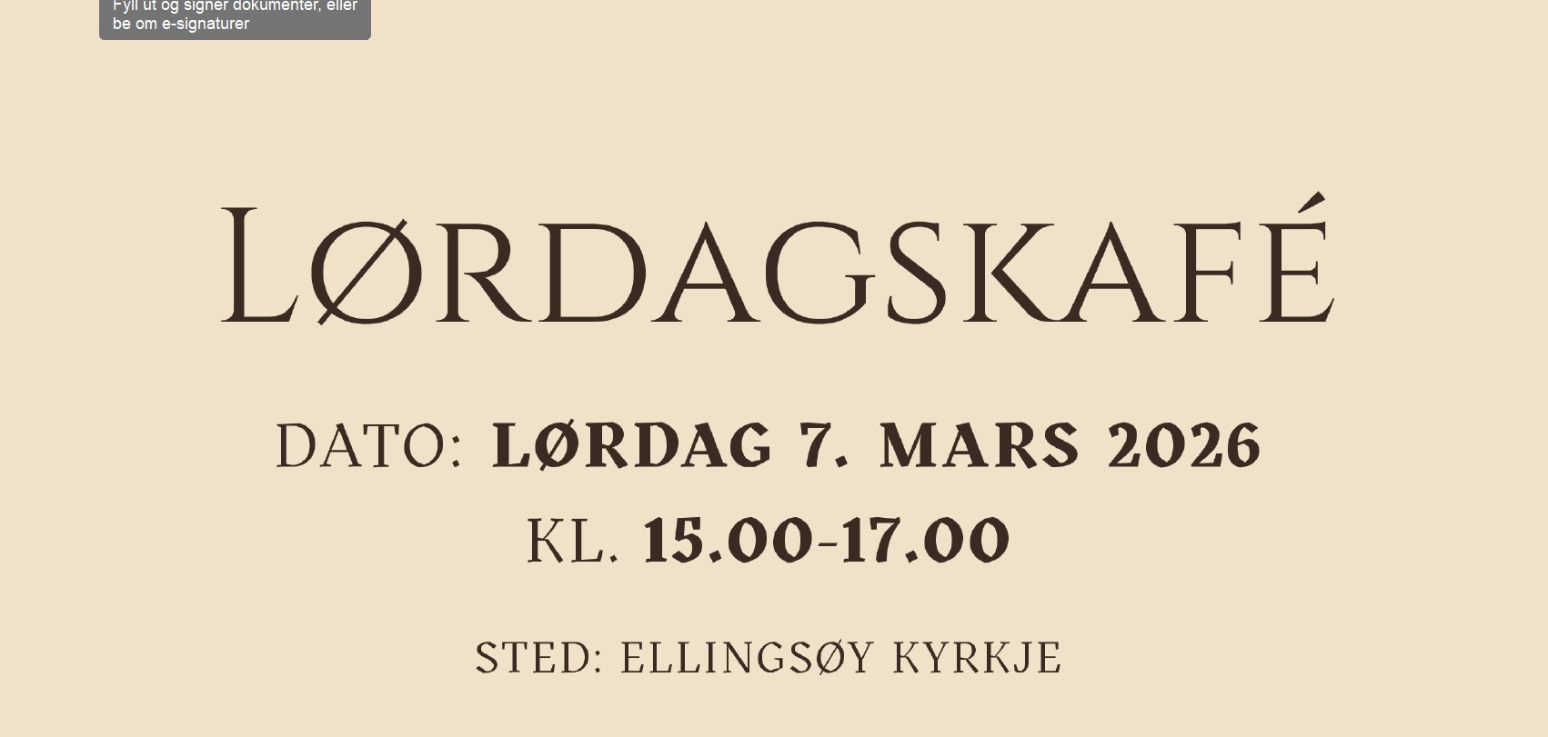 Velkomen til LAURDAGSKAFÉ i kyrkjelydsalen i Ellingsøy kyrkje 07.mars kl 15.00.